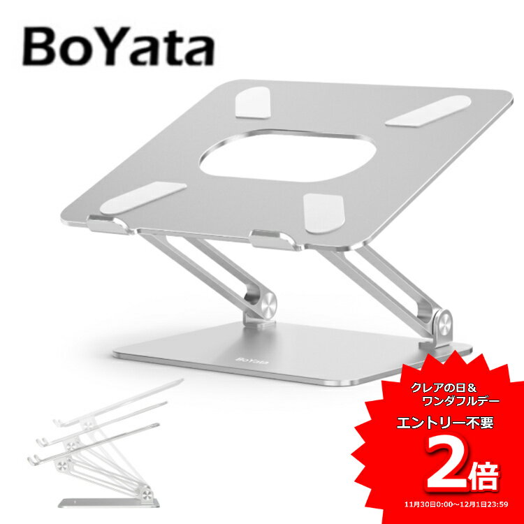 あす楽 雑誌掲載 BoYata 正規代理店 ノートパソコンスタンド N-19 PCスタンド 高さ/角度調整可能 姿勢改善 猫背解消 折りたたみ式 ノートPCスタンド 滑り止め 高級 アルミ合金製 ホルダー Macbookボヤタ/Macbook Air/Pro/iPad/ノートPC/タブレット テレワーク